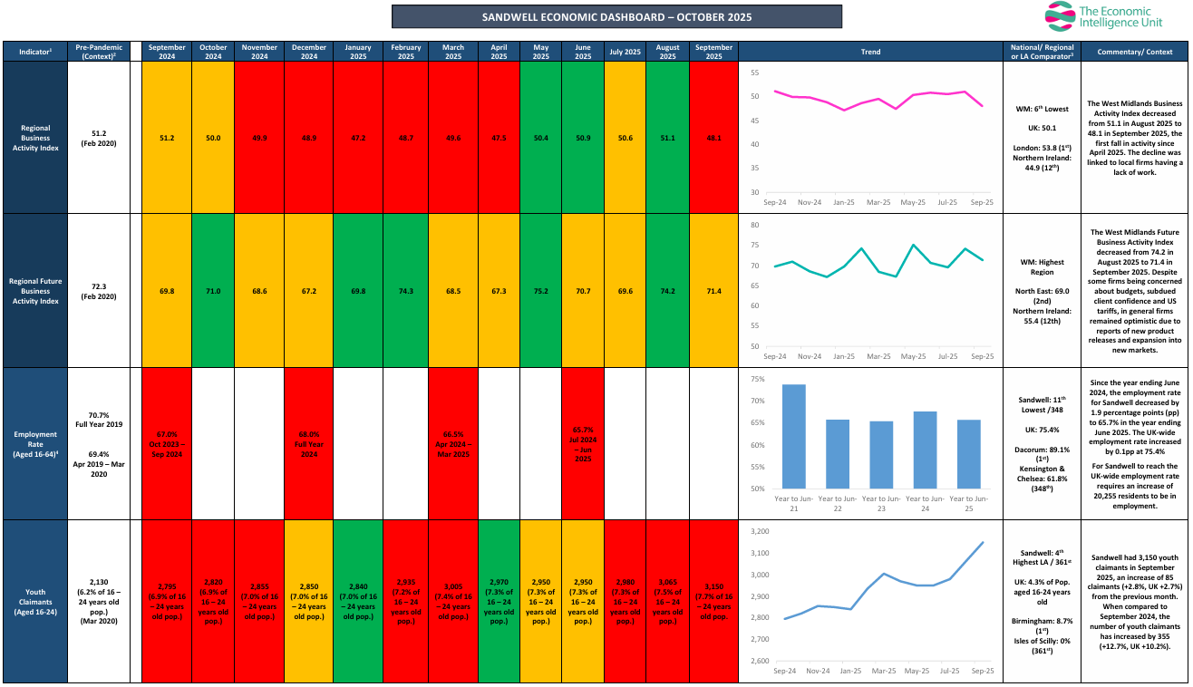 A dashboard showcasing an array of information relating to the economy of Sandwell