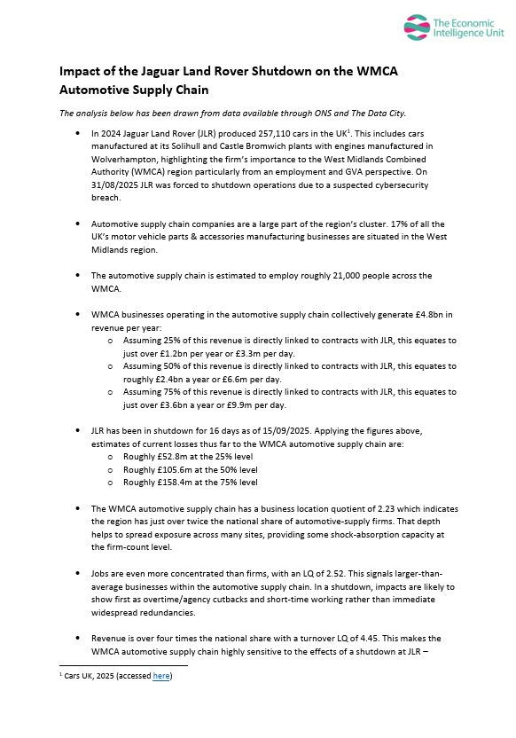 Impact of the Jaguar Land Rover Shutdown on the WMCA Automotive Supply Chain